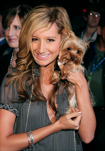 | Ashley Tisdale with her super cute Yorkshire!! |